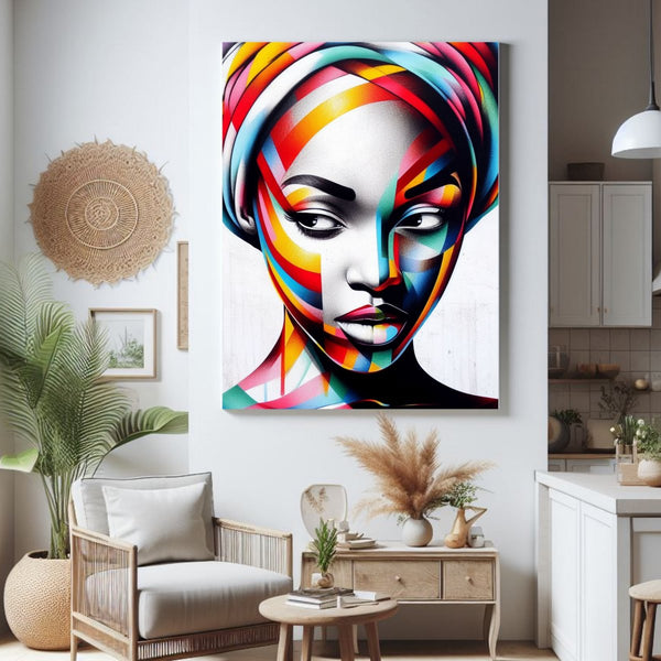 Explorez la Beauté des Antilles avec notre Tableau sur Toile "Éclat Créole : Portrait en Couleurs"
