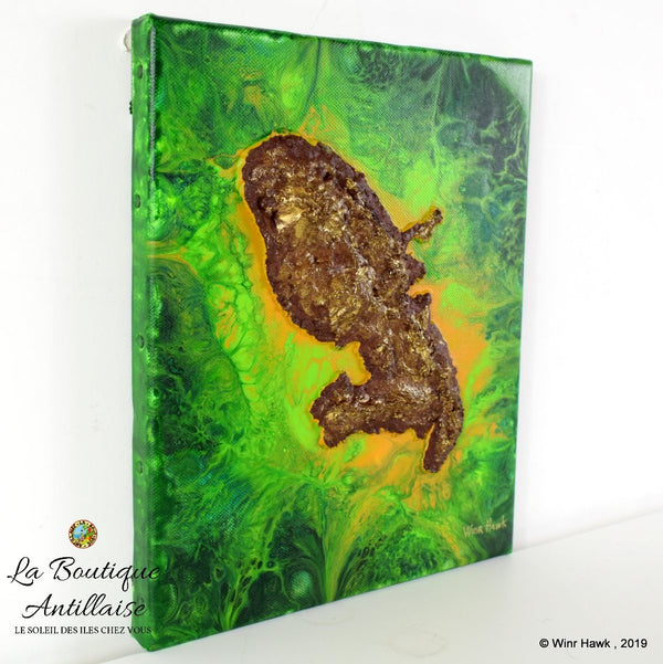 WinrHawk "Guadeloupe bleus d'océan", 2019 - Peinture acrylique 22x27x2cm