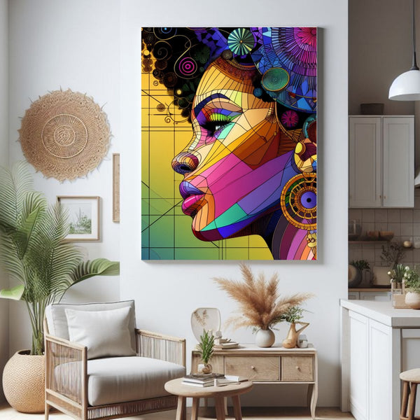 Explorez la Beauté des Antilles avec notre Tableau sur Toile "Rêve d'Or : Portrait Rayonnant d'une Femme des Antilles"